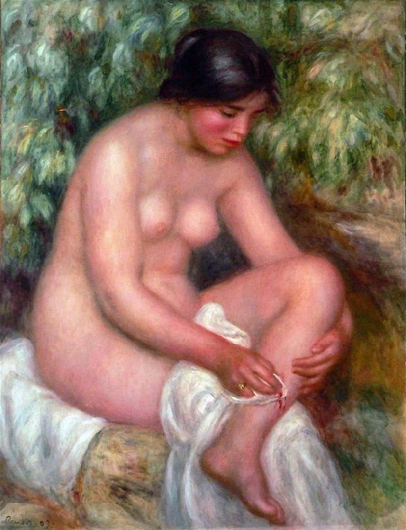 Artist: Pierre-Auguste Renoir 1841-1919 - Title: August Renoir Bathing - Medium: Fine Art Reproduction Giclee on Canvas - Image Size: Approximately 20 inches x 15.25 inches - Unframed on Unstretched Canvas - Biography: An innovative artist, Pierre-Augu