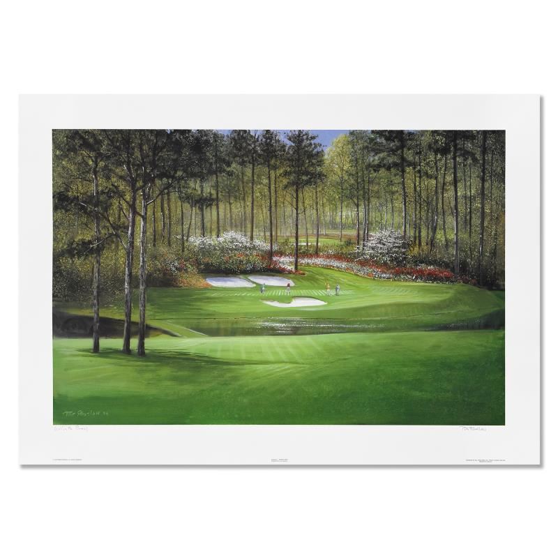 Augusta - Twelfth Hole is a limited edition lithograph on paper by Peter Ellenshaw (1913-2007), numbered and hand signed by the artist. Includes Letter of Authenticity. Measures approx. 37.5 x 25.5 (border), 32.5 x 20 (image). Please note: due to the very thin nature of this paper, there may be some minor creases.