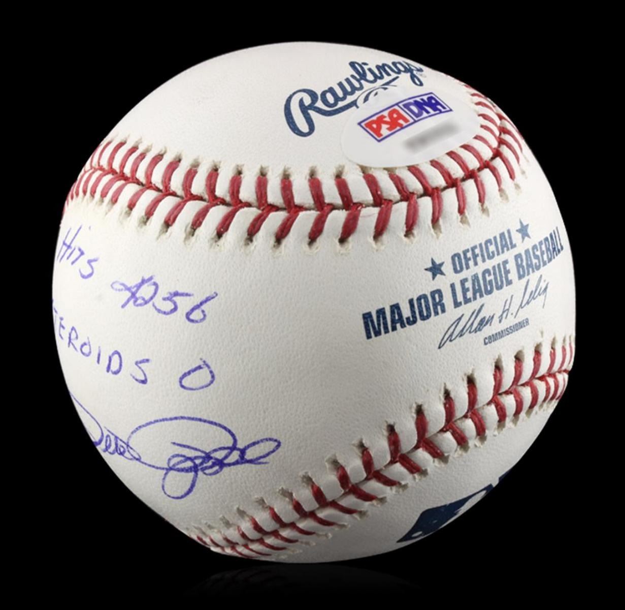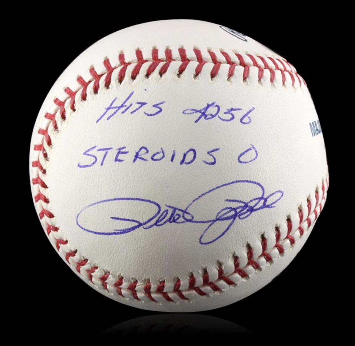Autographed Pete Rose Baseball PSA Certified. Excellent Condition! DX153MA. Signed Pete Rose baseball with 4256 hits and 0 Steroids written on the ball. Pete Rose had "4256 hits in his 24 year career with the Reds, Phillies, and the Expos. Pete won 3 World Series Titles. He won in 1975 and 1976 with the Cincinnati Reds and he won his third in 1980 with the Philadelphia Phillies. PSA Certified.