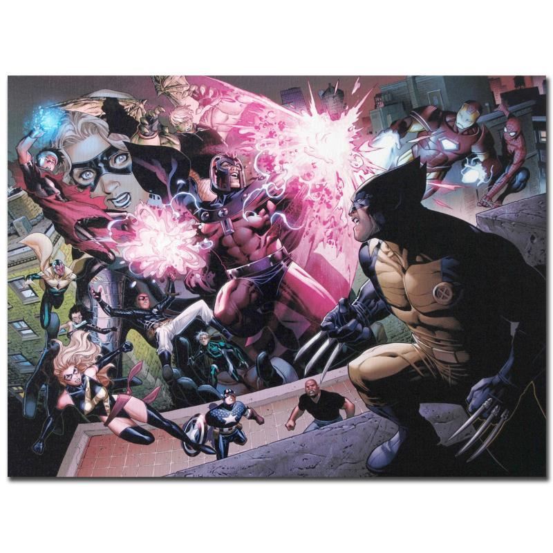 A piece of comic book history, this limited edition, from original art by Jim Cheung, depicts Hulkiling, Wiccan, and Magneto, Ms. Marvel, captain America, Wolverine and many other marvel characters. Jim Cheung was named as one of 2005's "Young Guns" by Marvel Editor-in-Chief Joe Quesada, and has been described as a "future superstar penciller." "Avengers: The Children's Crusade #2" is a limited edition numbered giclee on canvas by Jim Cheung presented by Marvel Comics. This piece comes gallery wrapped. Includes Certificate of Authenticity! Measure approx. 24" x 18" (image).