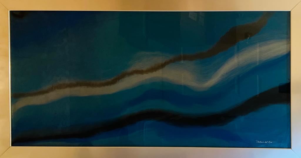 Azul Brillante by Del Mar, Paulina. Original One-of-a-Kind Hand Signed Mixed Media Resin on Wood Framed. Dimensions: 23 x 47. .