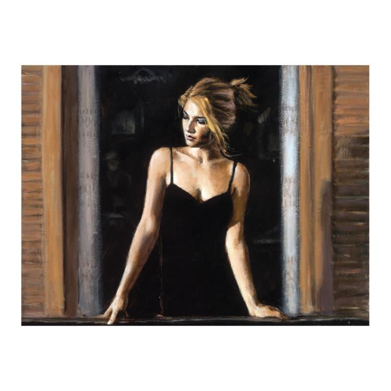 "Balcony Buenos Aires VII" is a hand textured limited edition giclee on canvas board by Fabian Perez. The piece is numbered and hand signed. Includes a certificate of authenticity. Measures approximately 12.5" x 16.5"