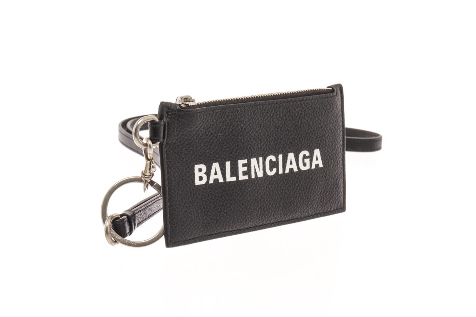 Balenciaga Black Calfskin Leather Logo Strap Cardholder. All available information is listed in the description and shown in the photos. Balenciaga Black Calfskin Leather Logo Strap Cardholder with calfskin leather, it a zip closure to ensure the contents are safe, while a leather strap Cardholder Width: 13cm, Height: 7cm, Depth: 1cm, / 5.11" x 2.75" x 0.39" Inches