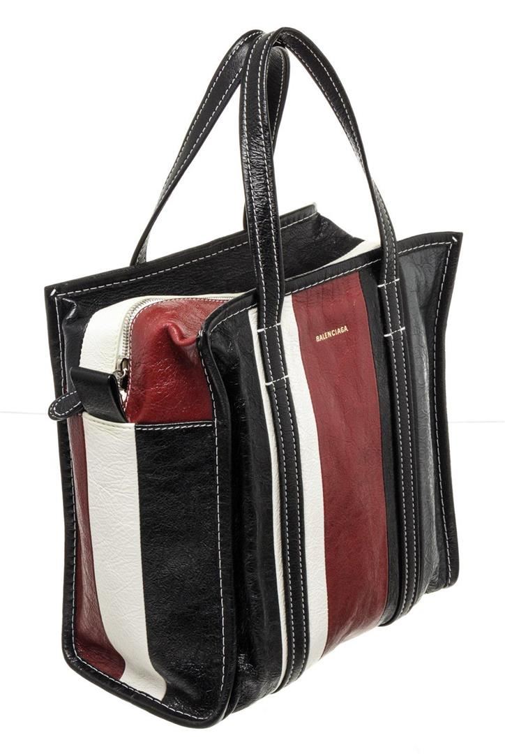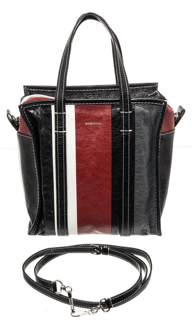 Balenciaga Black Leather Bazar Convertible Shoulder Bag with leather, gold-tone hardware, trim leather, interior zip pocket, dual top handle and zipper closure.