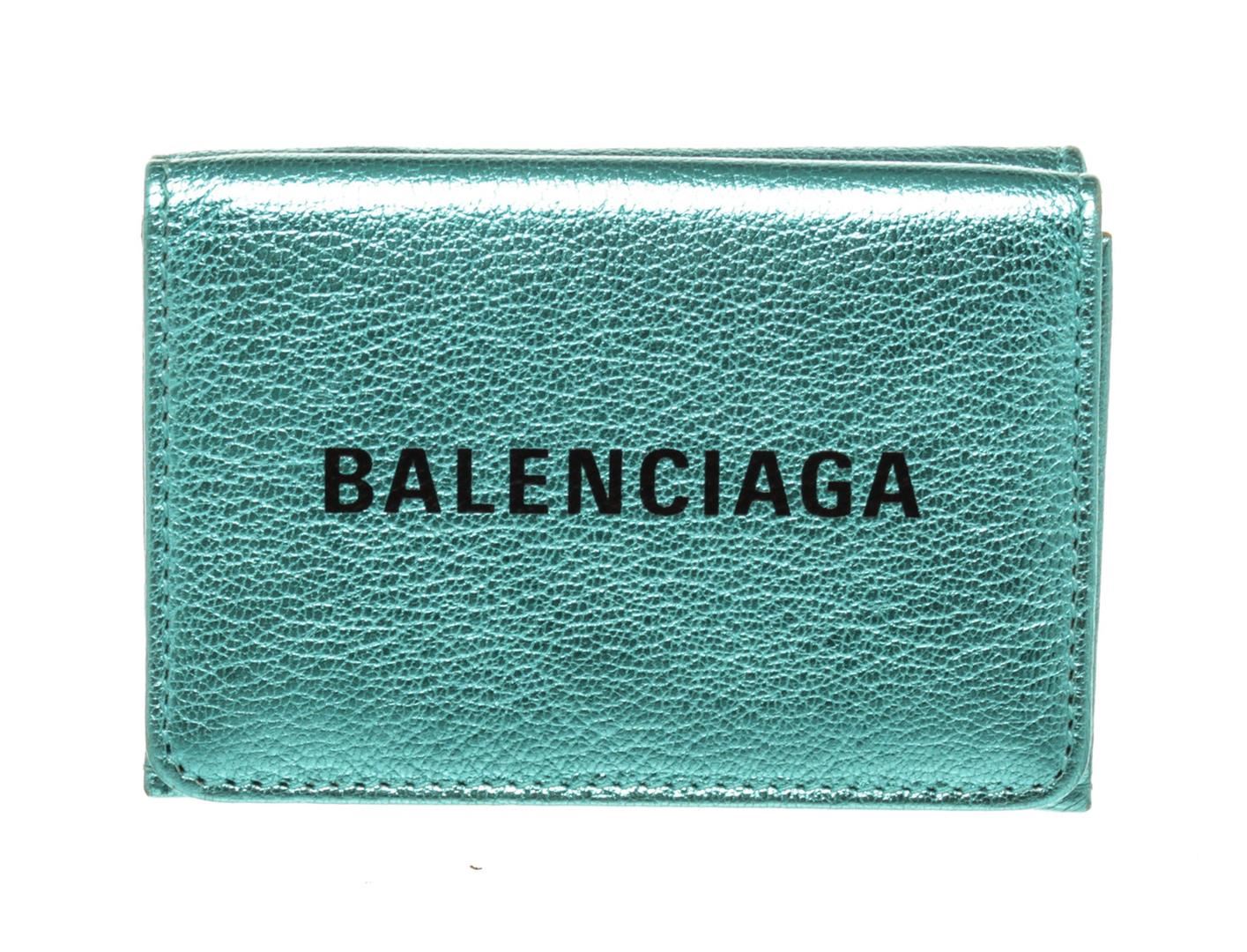 Balenciaga Blue Leather Logo Trifold Wallet