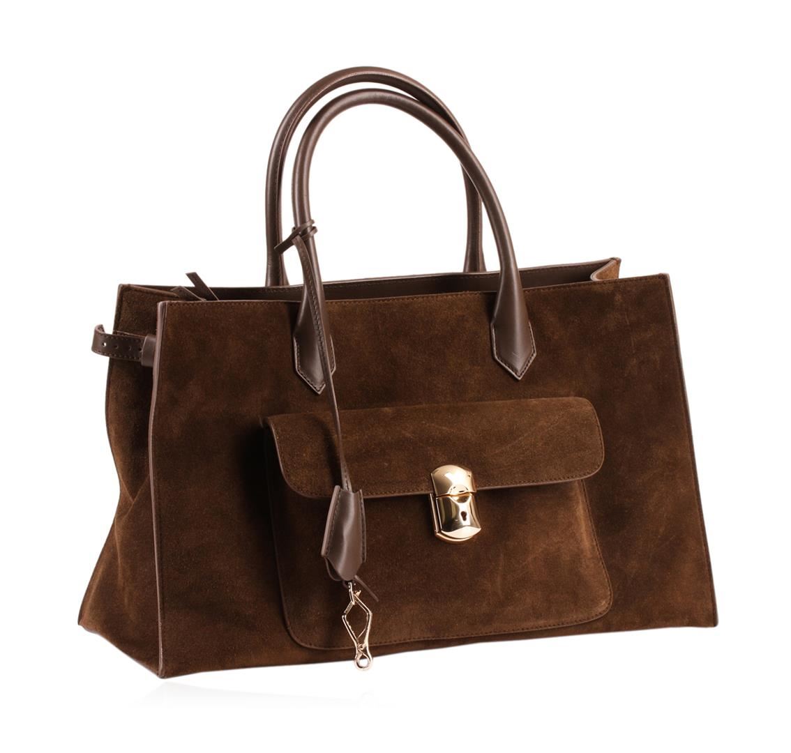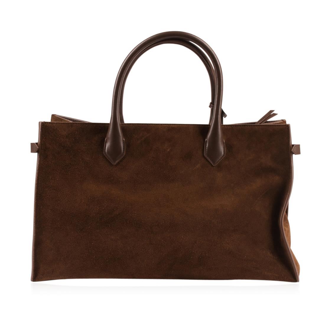One Balenciaga Brown Padlock Work Bag. Beautiful brown suede padlock bag from balenciaga. Measures 10" x 14.25" x 6" . 21" handle drop. Zipper top closure. One removable strap. Comes with original dust bag.