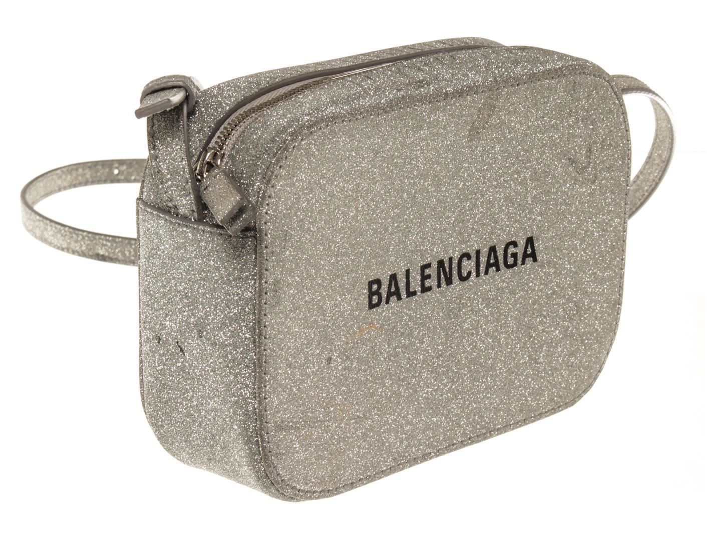 One Balenciaga Everyday Camera Bag. Item is sold AS-IS. All available information is listed in the description and shown in the photo. Balenciaga Everyday Camera Bag Black Grey. Features silver hardware, grey leather strap, black logo on front pocket, and a silver zipper closure.