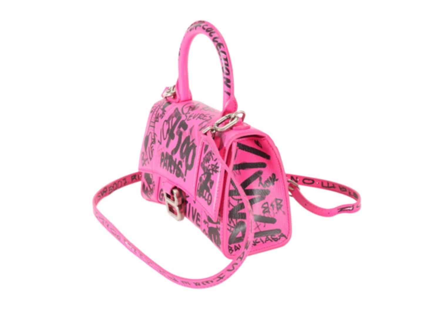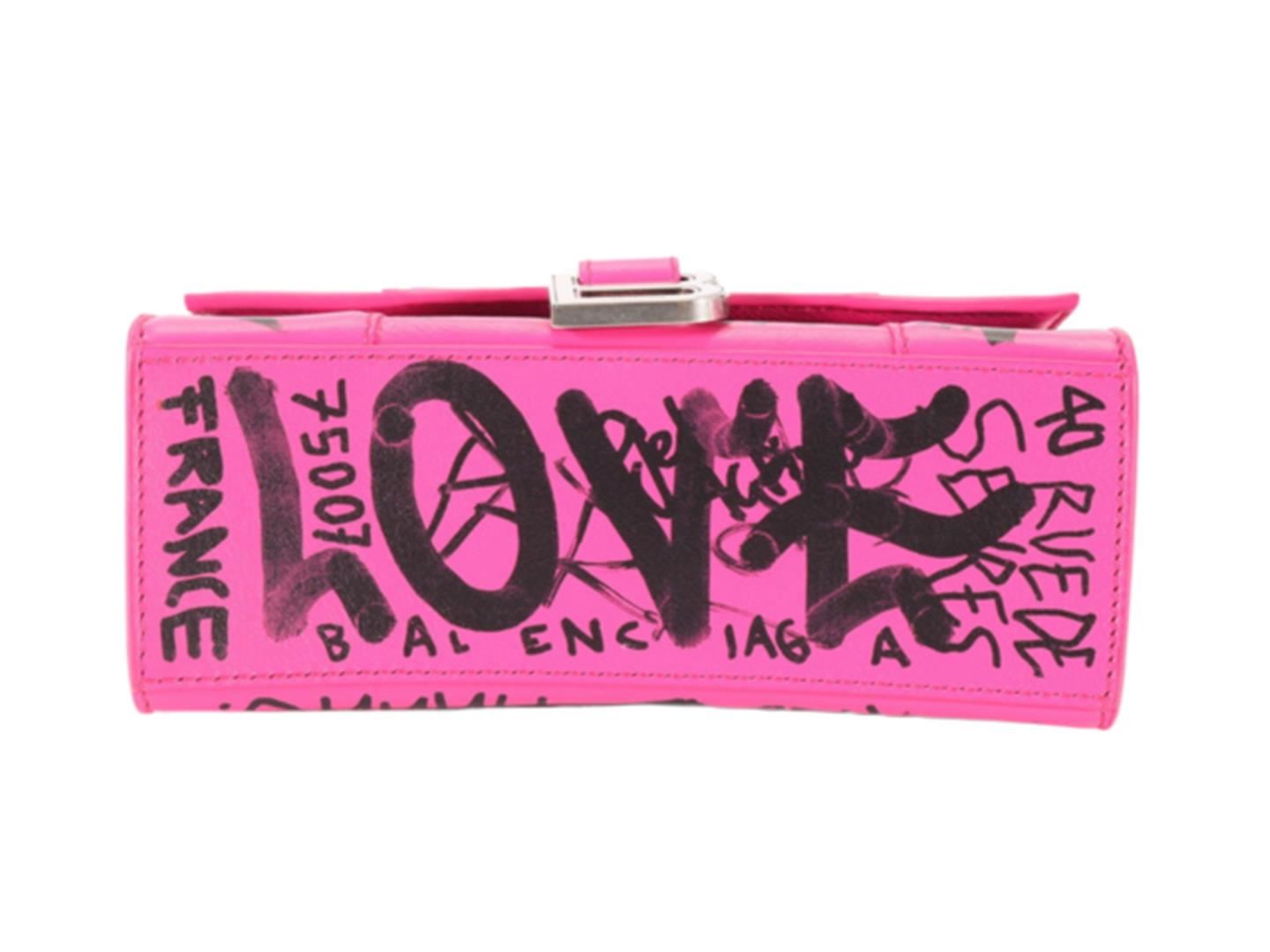 One Balenciaga Pink Graffiti Printed Calfksin Leather Hourglass XS Top Handle Shoulder Bag. Item is sold AS-IS. All available information is listed in the description and shown in the photo. Pink Leather