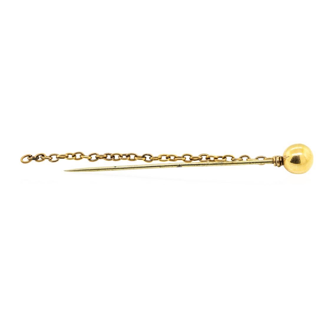 One yellow gold plated ball and chain stick pin weighing 4.1 grams.