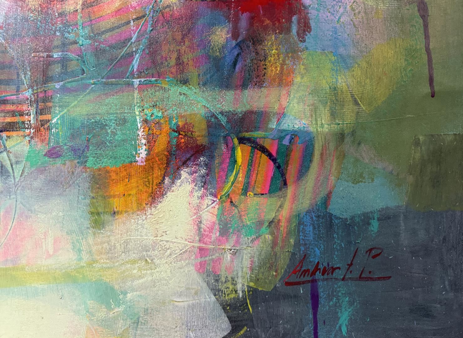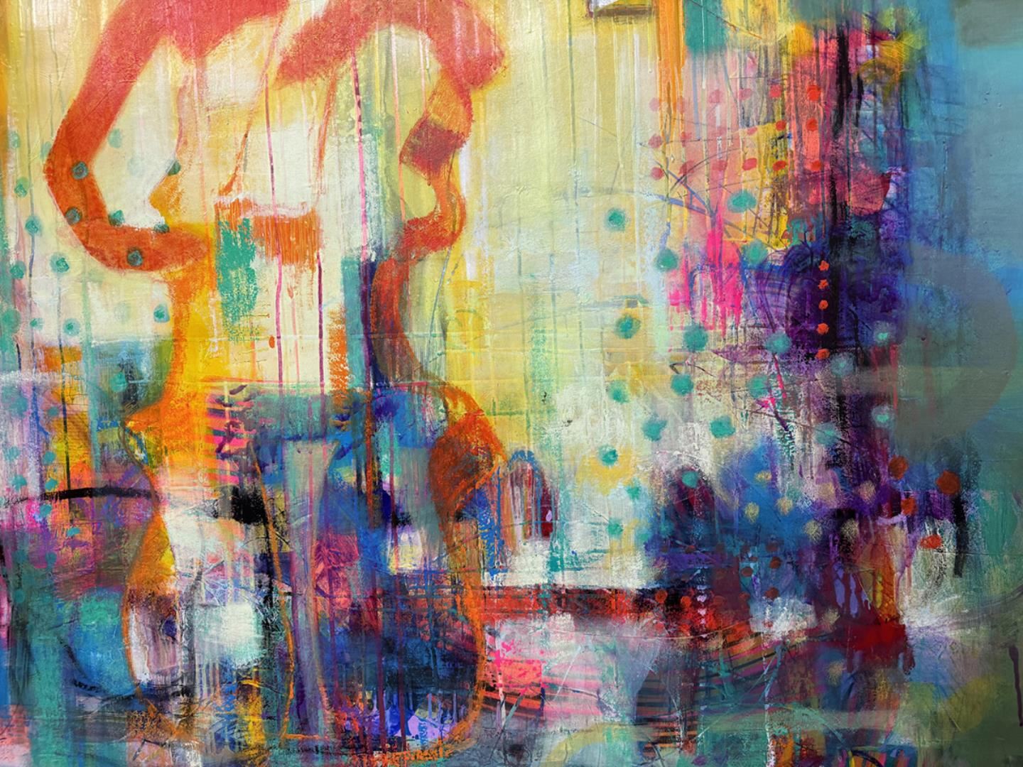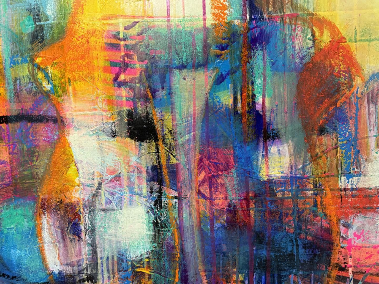 Bright, beautiful original acrylic on canvas signed by the artist. This artwork comes rolled in a tube for easy shipping. Art size 60x60 inches.