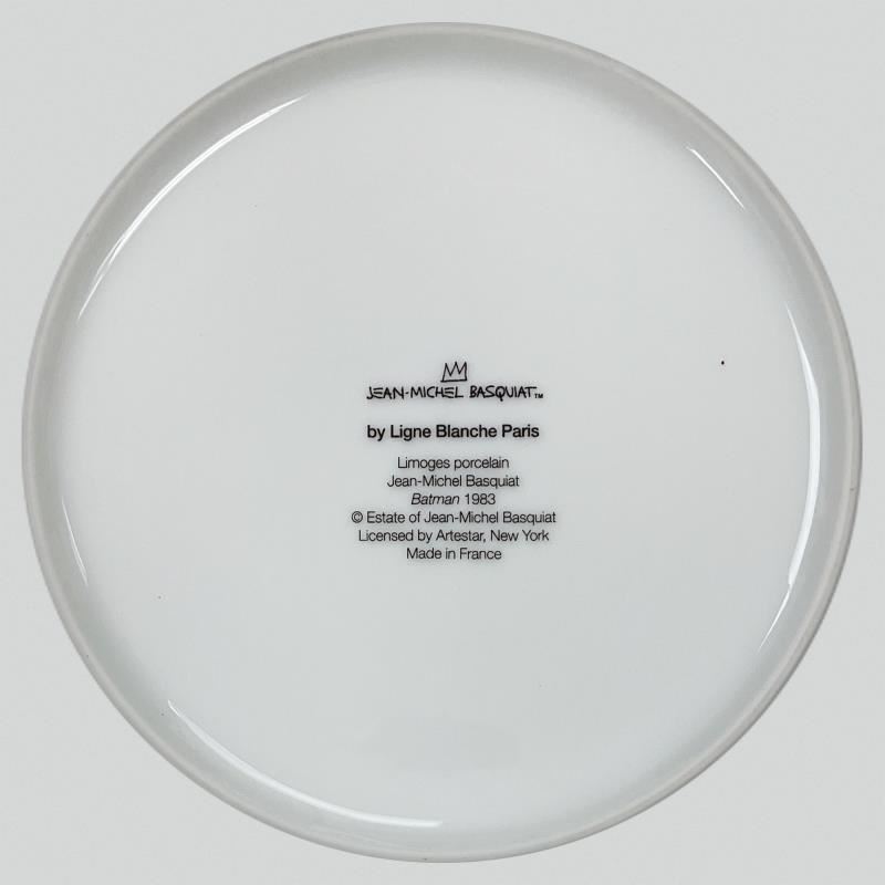 "Batman 1983" is a Limoges porcelain plate bearing the plate signature inverso of Jean-Michel Basquiat (1960-1988). This plate is custom framed and floated on linen. Measures approx. 16" x 16" (frame), 11" (plate diameter).