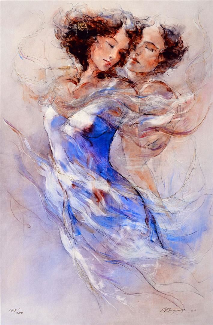 Artist: Gary Benfield - Title: Ardent Love - Medium: Fine Art Giclee on Canvas - Signature: Hand-signed by the Artist - Limited Edition: 200 - Image Size: Approximately 28 inches x 18 inches - Unframed on UnStretched Canvas - Details: This work comes with a Certificate of Authenticity - Biography: Benfield's paintings are drawn rapidly with an almost passionate urgency. Many sketches are immediately discarded, only those that feel right, that have integrity are presented to the public. This ensures that his work is dynamic yet maintains a strong organic unity. Few artists can, as well as Benfield, capture the sense of movement, both physical and emotional. After leaving the academic world he set up his own studio near London and concentrated on drawing and painting figures. Within a few years his work was collected throughout Europe and his reputation firmly established.