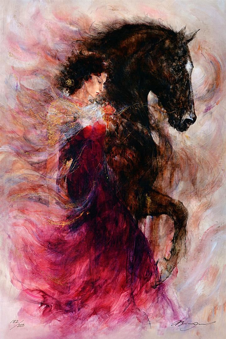 Artist: Gary Benfield - Title: Midnight Star - Medium: Fine Art Giclee on Canvas - Signature: Hand-signed by the Artist - Limited Edition: 350 - Image Size: Approximately 32.5 inches x 21.75 inches - Unframed on UnStretched Canvas - Details: This work comes with a Certificate of Authenticity - Biography: Benfield's paintings are drawn rapidly with an almost passionate urgency. Many sketches are immediately discarded, only those that feel right, that have integrity are presented to the public. This ensures that his work is dynamic yet maintains a strong organic unity. Few artists can, as well as Benfield, capture the sense of movement, both physical and emotional. After leaving the academic world he set up his own studio near London and concentrated on drawing and painting figures. Within a few years his work was collected throughout Europe and his reputation firmly established.