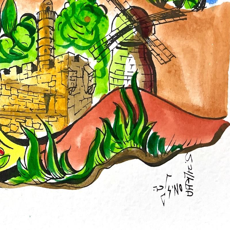 "Beloved Jerusalem" is a one-of-a-kind hand watercolored mixed media on paper by Sami Zilkha, hand signed by the artist. Includes Letter of Authenticity. Measures approx. 12" x 9" (border), 9.5" x 7" (image).