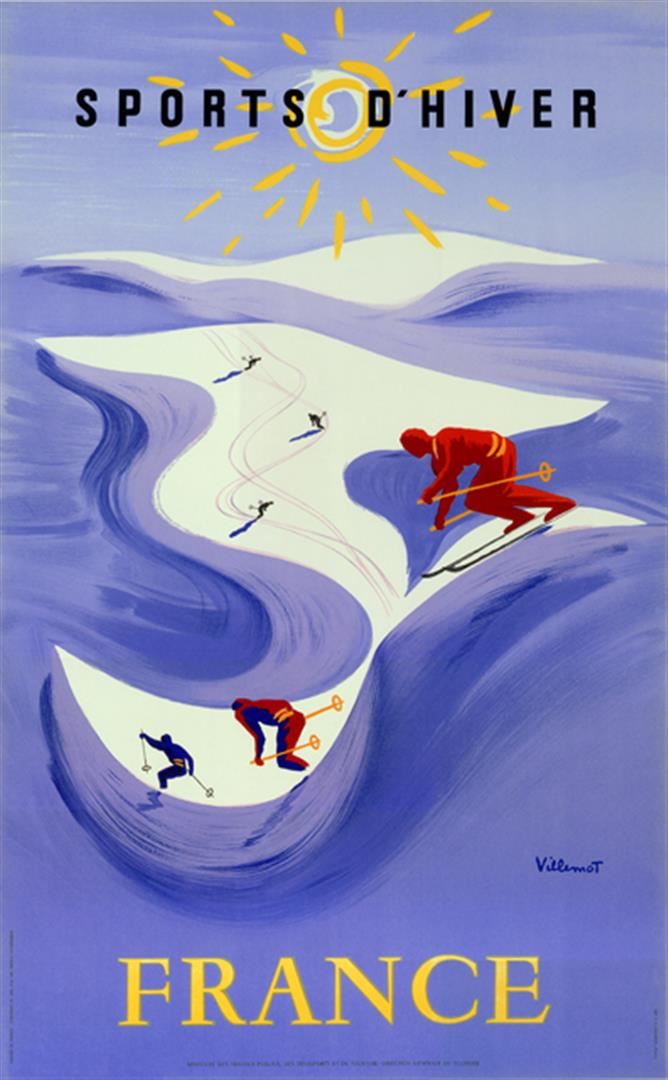 Artist: Bernard Villemot Title: Sports D'hiver Medium: Fine Art Reproduction Giclee on Canvas Image Size: Approximately 32 inches x 19.75 inches Unframed on Unstretched Canvas Biography: Bernard Villemot was born in 1911 at Trouville-sur-Mer (Calvados), France. He studied art at the Julian Academy in Paris. He designed his first poster in 1936. His poster designs are noted for their use of vivid colors and bold forms.