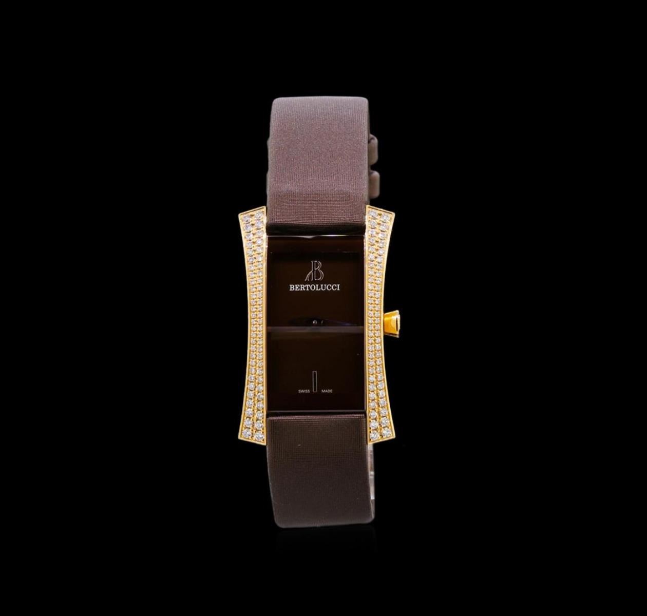 One Bertolucci watch featuring: Case: 18KT rose gold set with diamonds. Dial: Brown color. Bracelet: Bertolucci strap with 18KT rose gold buckle clasp.