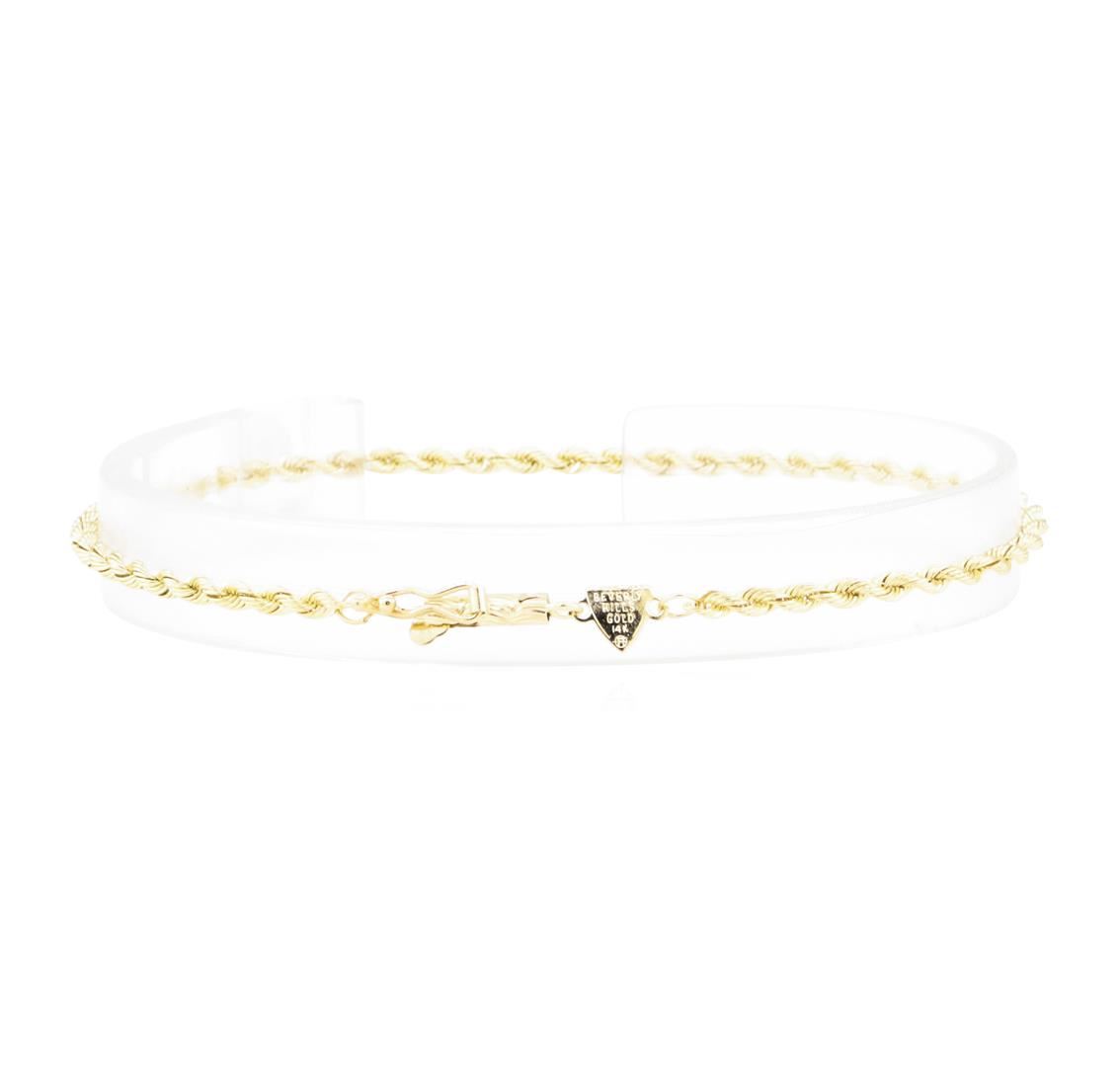One Beverly Hills Gold rope bracelet measuring approximately seven inches in length and 2.2mm in width featuring: 14KT yellow gold weighing 2.5 grams.