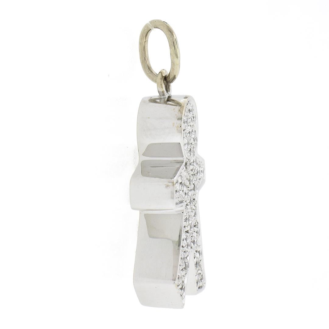 A solid 18k white gold pendant by Bibigi, with 32 round cur natural diamonds (G/H - VS1/VS2 ; 0.55ctw ). The pendant weighs a total of 7.27 grams, measures 29.80x15.50mm including the bail, and the inside of the bail measures 4.3x3.8mm.