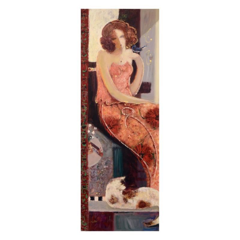 "Blue Bird" is a limited edition hand embellished giclee on canvas by Sabzi, numbered and hand signed by the artist. Includes Certificate of Authenticity. Measures approx. 14" x 44" (image).
