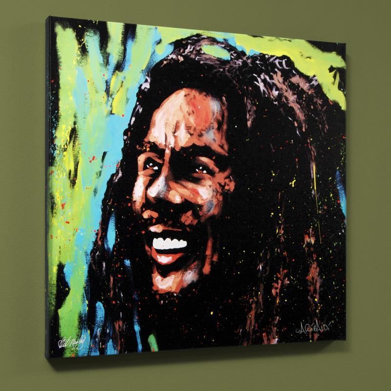 Combining his passions for music and art, David Garibaldi creates stunning visual poetry. "Bob Marley (Marley)" is a limited edition giclee on stretched canvas, numbered and bearing the artist's authorized signature. This piece comes gallery wrapped. Includes Letter of Authenticity. Measures approx. 36" x 36" (image).