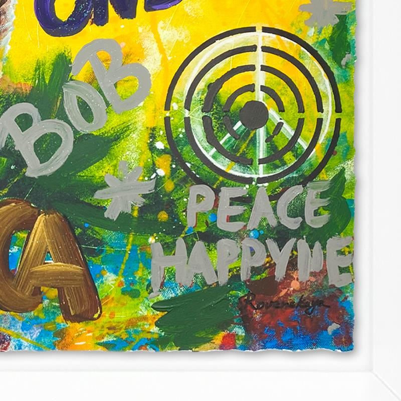 "Bob Marley" is a one-of-a-kind mixed media on deckle edge paper by Nastya Rovenskaya, Hand signed by the artist. This piece comes floating in a custom frame. Includes Letter of Authenticity. Measures approximately 24" x 29" (framed), 20" x 25" (image).
