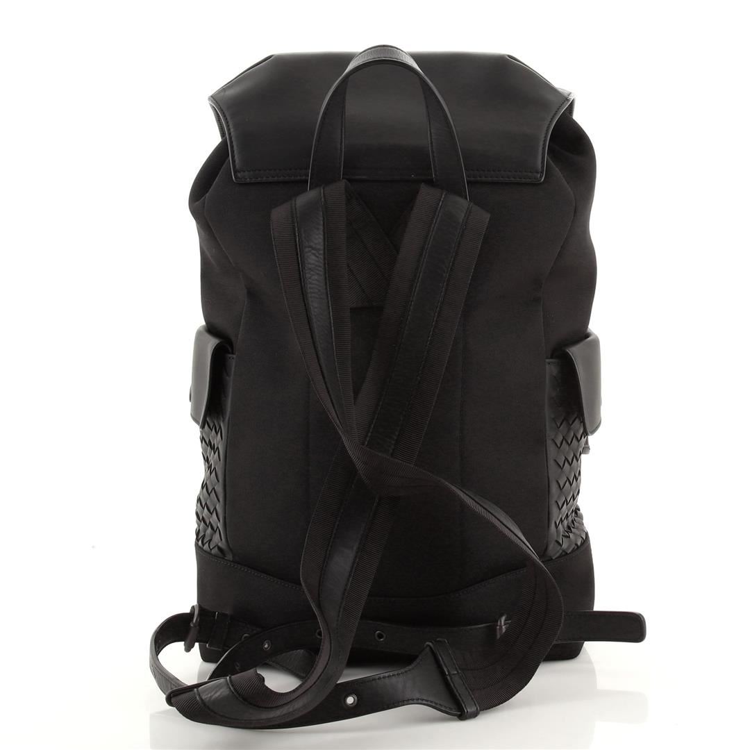Bottega Veneta Sassolungo Backpack Canvas and Leather. All available information is listed in the description and shown in the photos. Bottega Veneta Sassolungo Backpack Canvas and Leather. Minor wear and marks on exterior, scuffs and indentations on flaps, underneath flap and leather trims, scratches on hardware. 78848