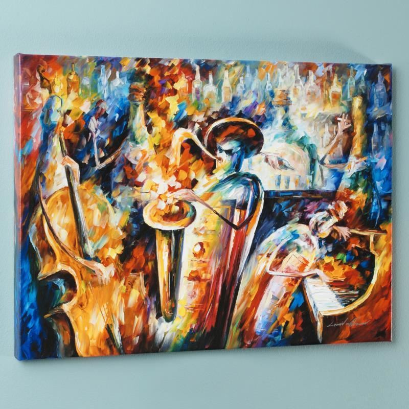 Leonid Afremov's (1955-2019) masterful use of color and texture make his paintings unique collectibles that are sure to brighten any wall. "Bottle Jazz III" is a limited edition giclee on canvas. The piece is numbered and bears the artist's authorized signature. This piece comes gallery wrapped. Includes Letter of Authenticity. Measures approx. 24" x 18" (image).