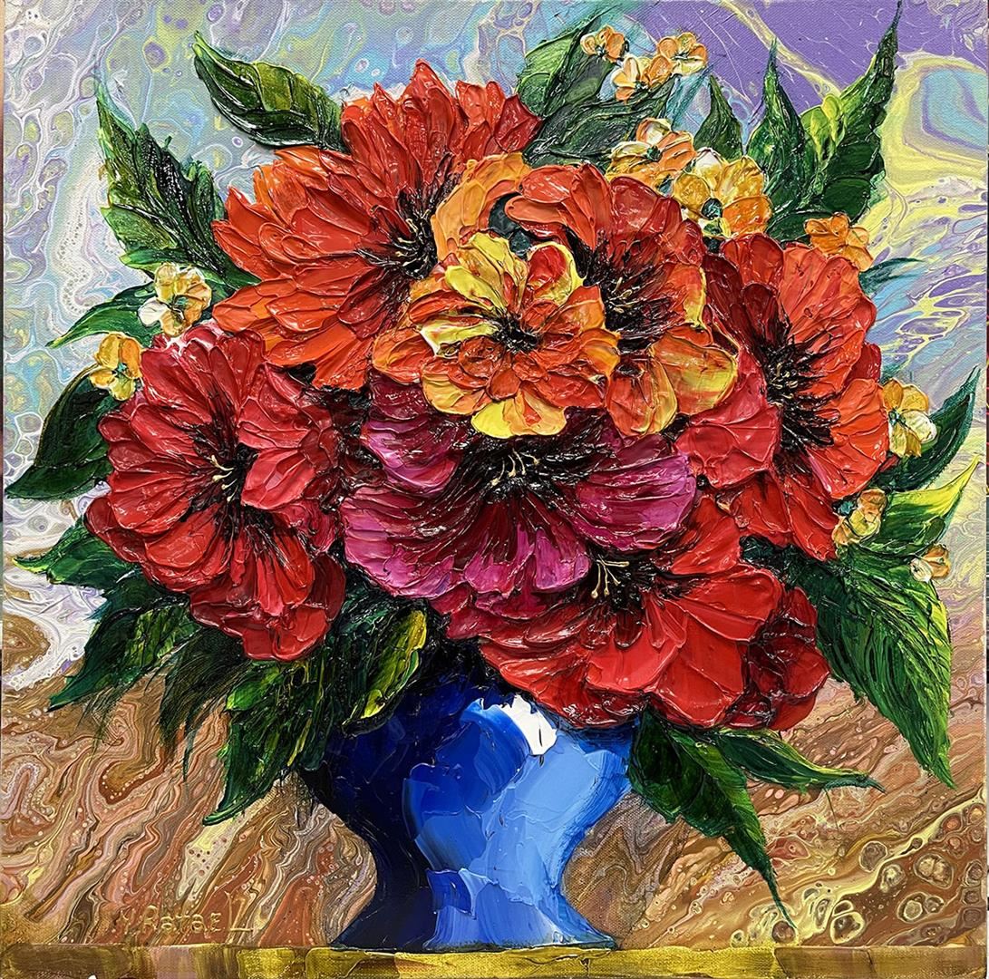 Brilliant original acrylic on canvas. Hand signed by artist. This artwork comes gallery wrapped. Approximately 20x20 inches