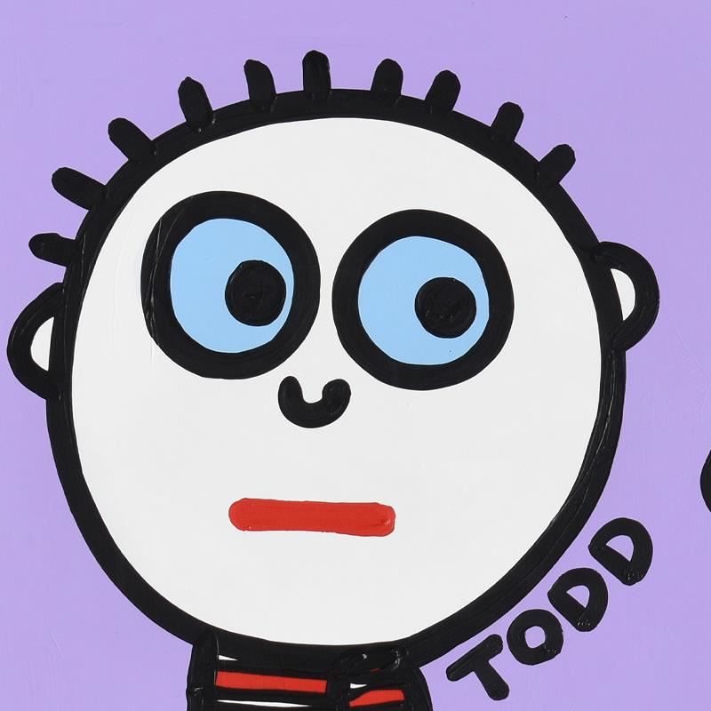 "Boys Are Stupid" is an original acrylic painting on gallery wrapped canvas by Todd Goldman, hand signed by the artist. Includes Letter of Authenticity. Measures approx. 48" x 36" (image). Due to the way this piece was stored there may be minor wear or signs of age (such as wear on the corners) but the piece is in overall good condition.