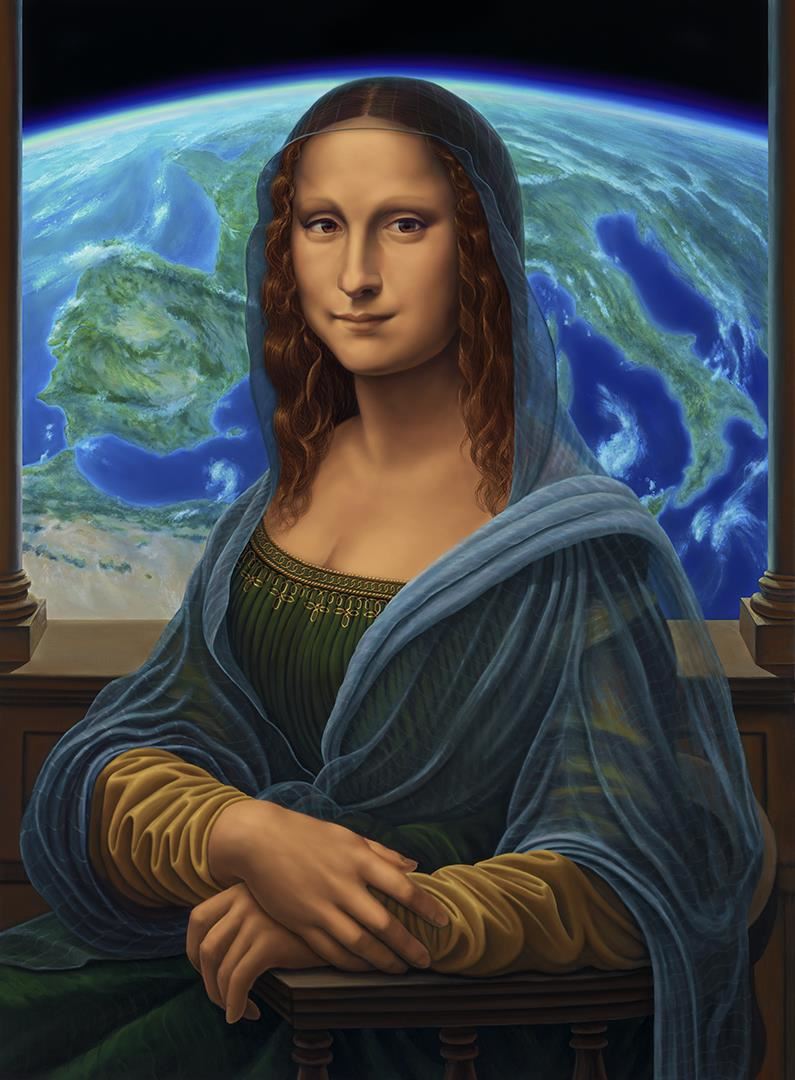 Bragg's "Mondo Lisa" is a 30x22" giclee on canvas featuring what is perhaps the world's most famous painting against a backdrop of the Earth seen from outer-space, giving Mona's contemplative grin new meaning for the 21st Century.