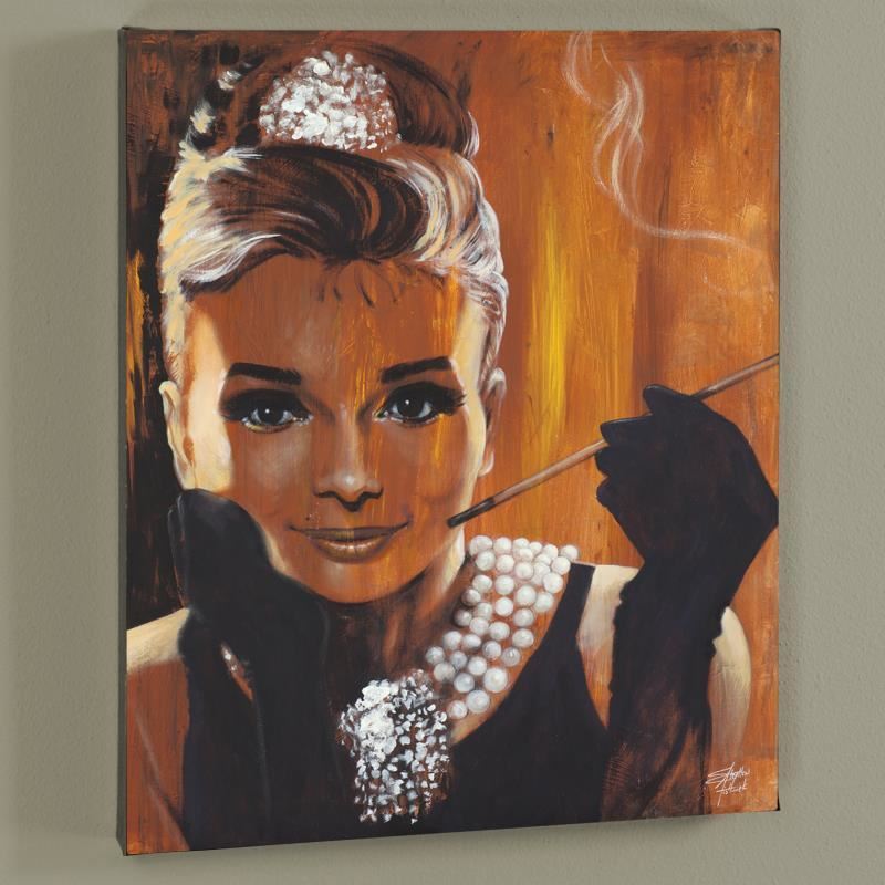 With bright colors and expressive lines, Stephen Fishwick puts a unique spin on pop culture portraits. "Breakfast" is a limited edition giclee on stretched canvas, numbered and bears the artist's authorized signature. This piece comes gallery wrapped! Includes Letter of Authenticity. Measures approx. 16" x 20" (image).