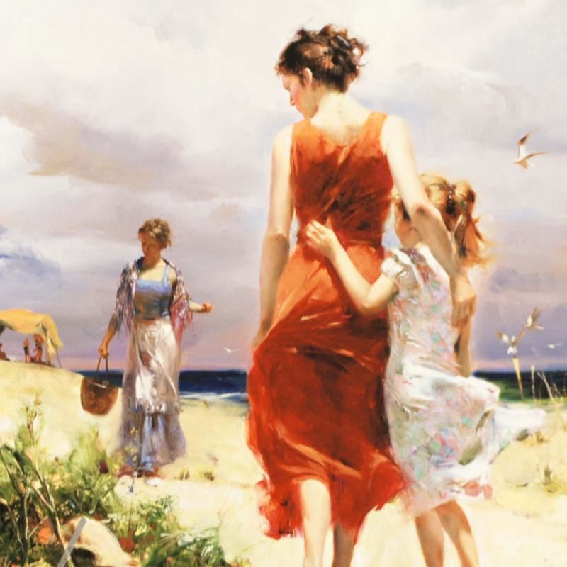 "Breezy Days" is a limited edition giclee on paper by Pino (1939-2010). The piece comes numbered and is hand signed by the artist. Includes Certificate of Authenticity. Measures approxiamtely 16 x 16" (image).