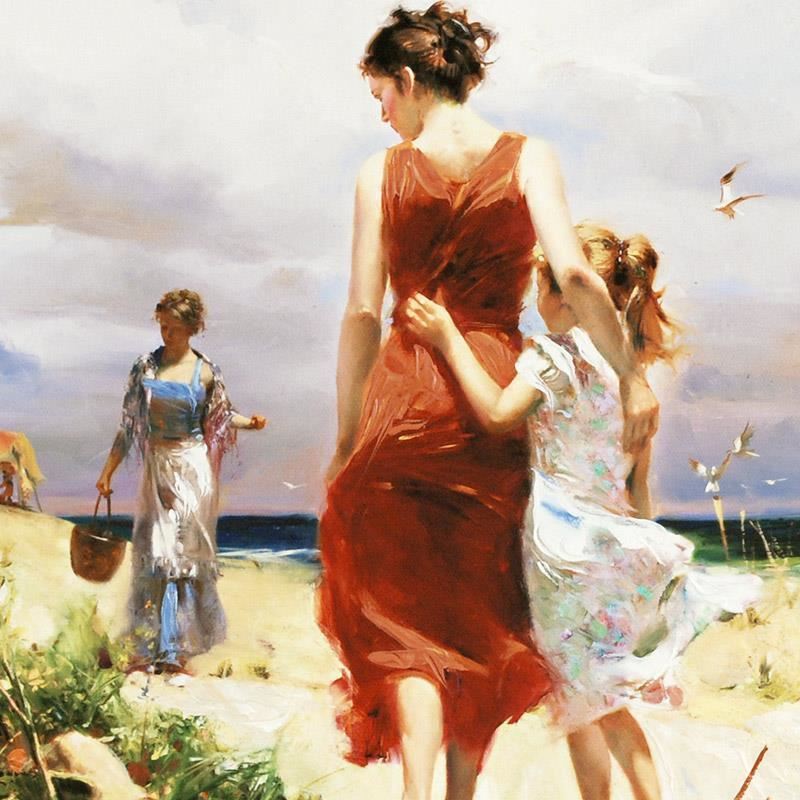 "Breezy Days" is a limited edition giclee on canvas by Pino (1939-2010), numbered and hand signed by the artist. Includes Certificate of Authenticity. Measures approx. 12 x 12" (image).