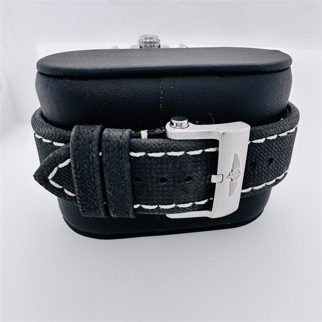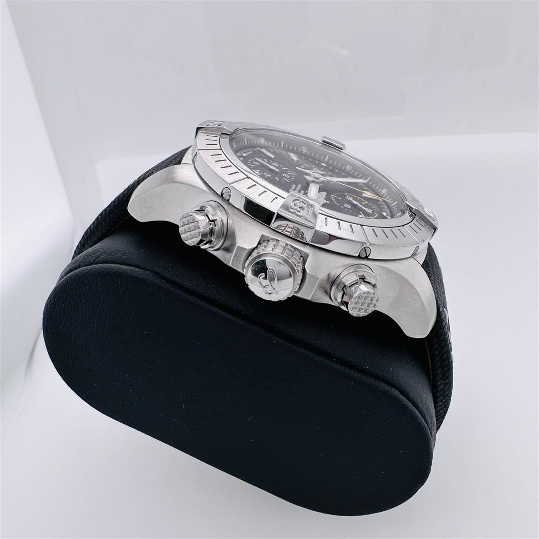One Breitling Avenger Stainless Steel Chronograph Black Dial Wristwatch. This watch is in excellent condition. The watch photographed is the actual watch.