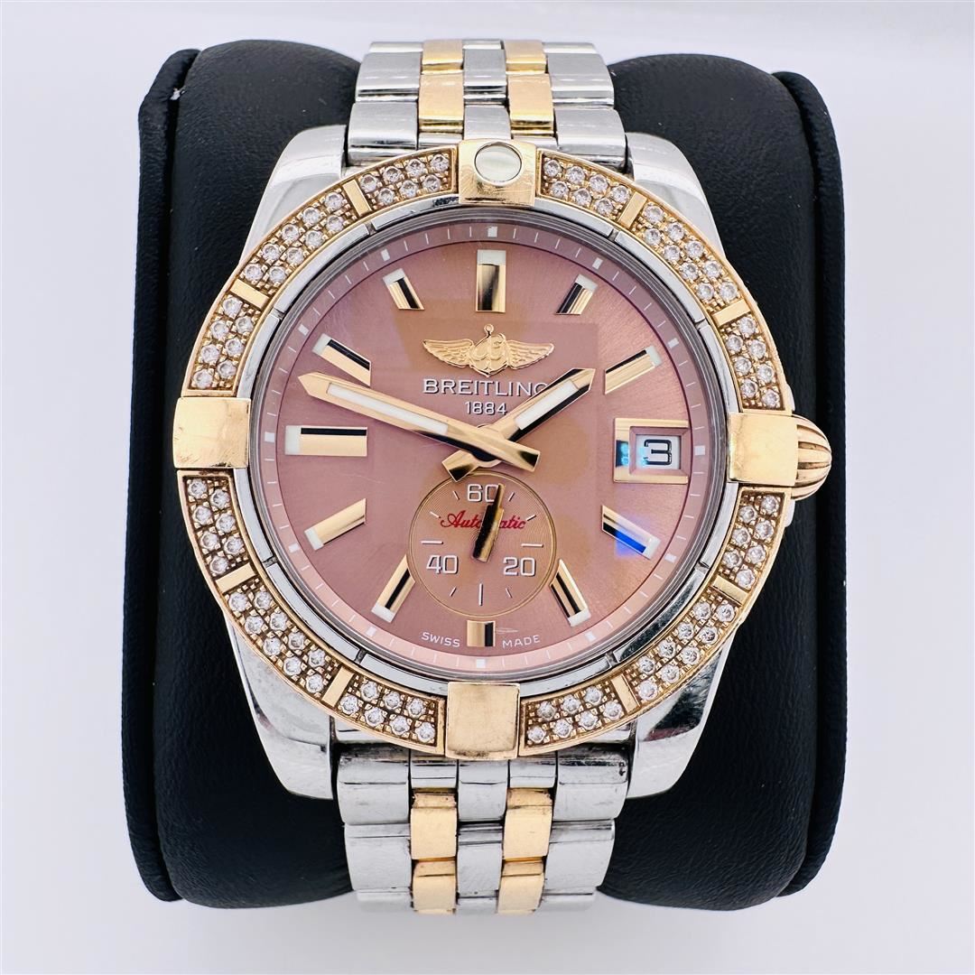 Breitling Galactic factory diamonds, 36mm two tone rose gold and Steel. Beautiful Breitling watch includes factory diamonds and two tone rose gold bracelet. 100% authentic and ready to wear and enjoy!