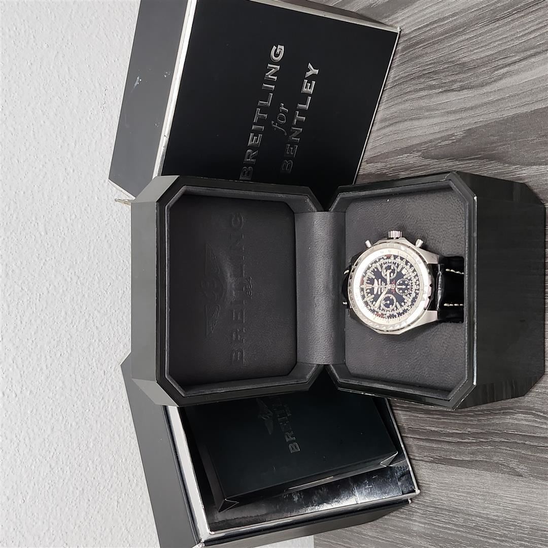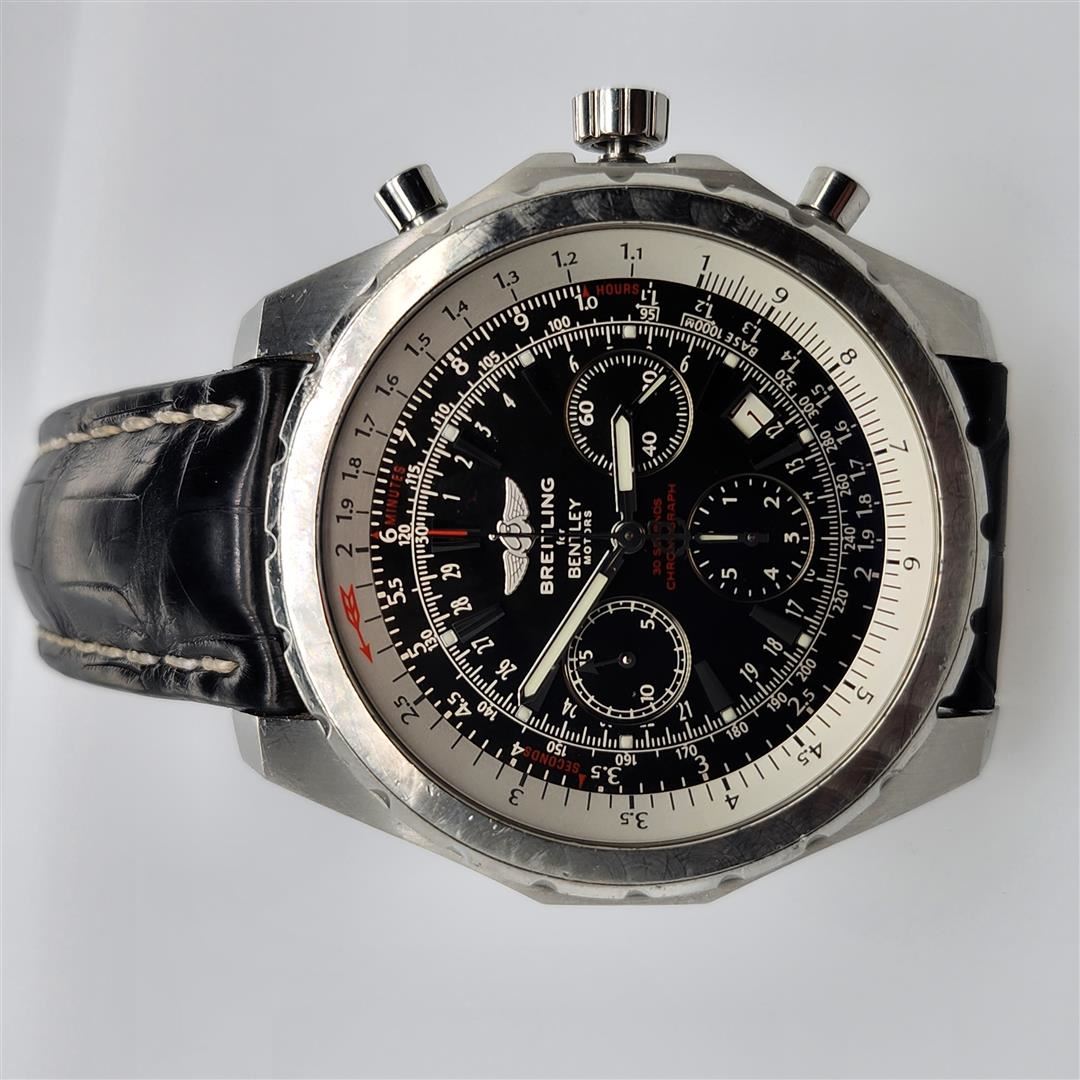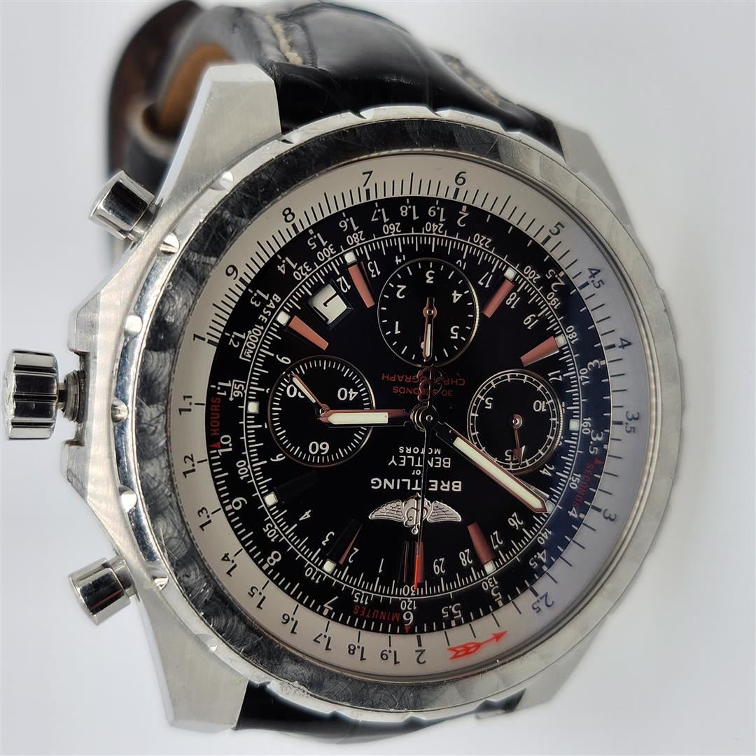 One Breitling for Bentley Motors 30 Second Chronograph Wristwatch. For pilots and others in love with flight, no brand is more closely associated with the world of aviation than Breitling. From the beginning, watchmaker Léon Breitling, who opened his shop in the Swiss Jura Mountains in 1884, was focused on chronographs and their uses in the burgeoning fields of sports, science and industry.