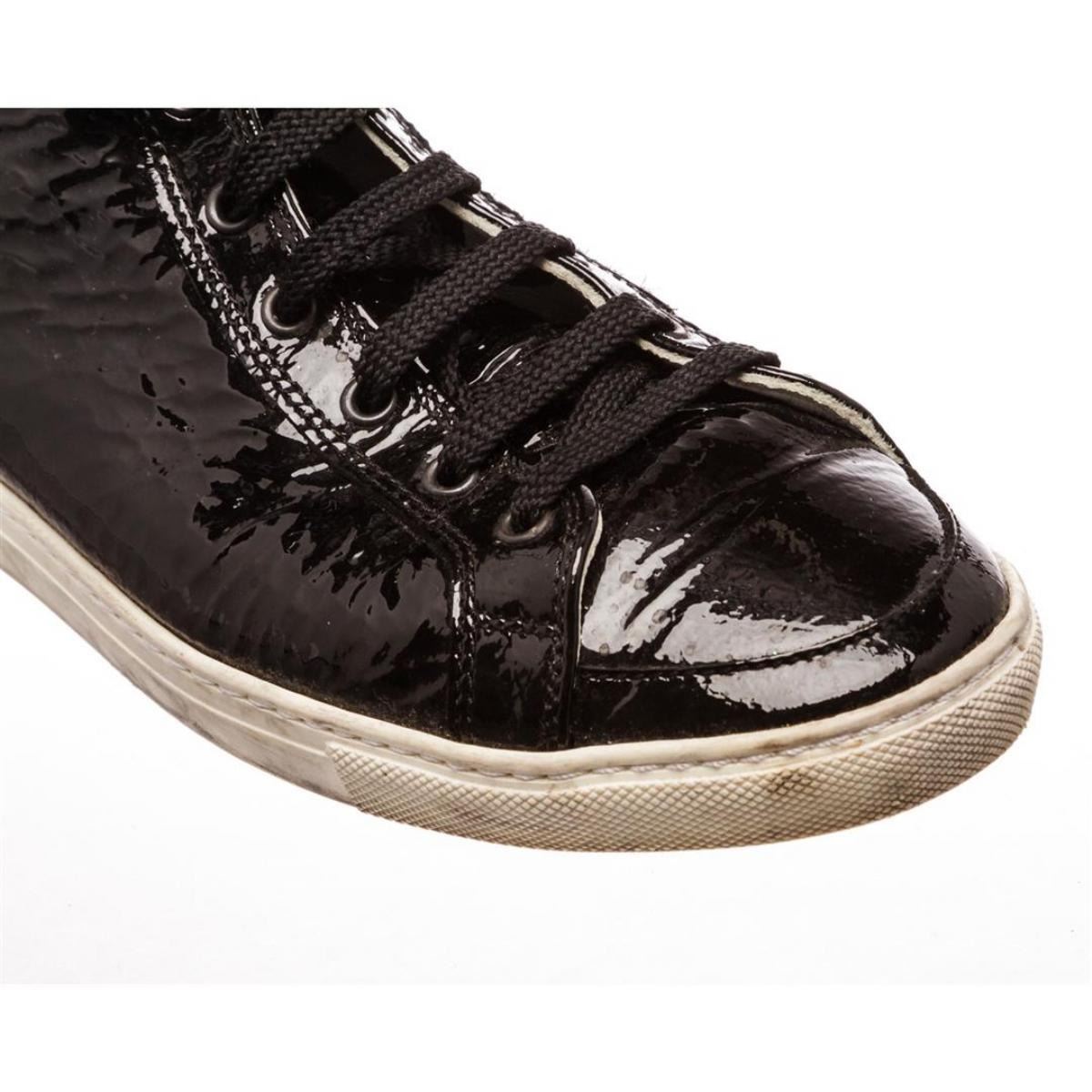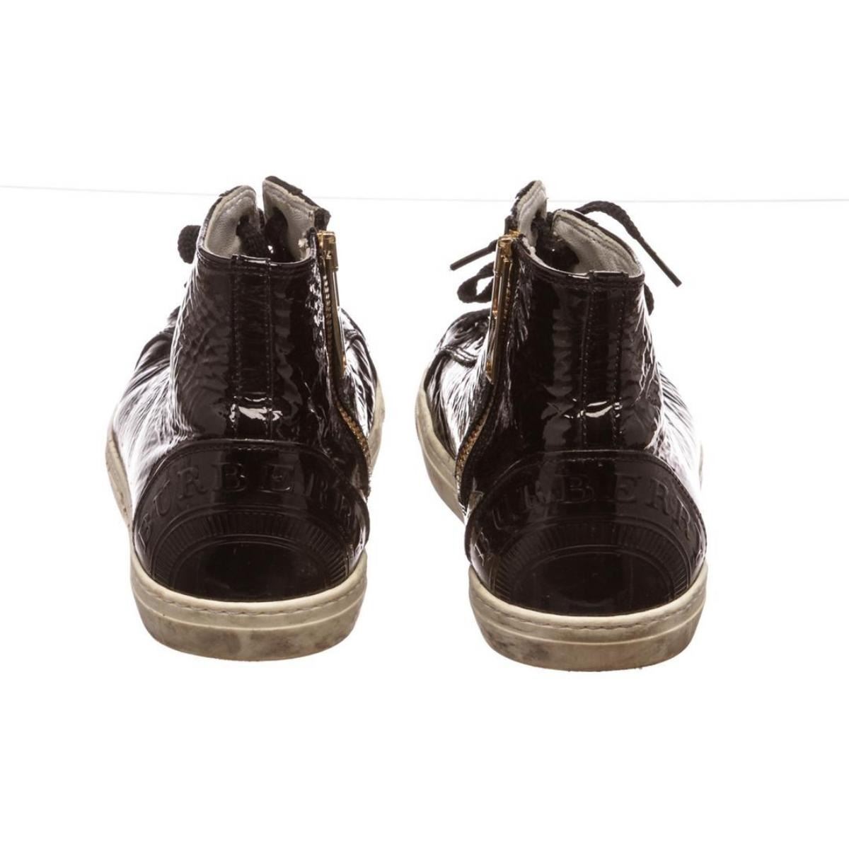 Burberry Black Patent Leather High Top Lace Front Sneakers. Designer size 36.
