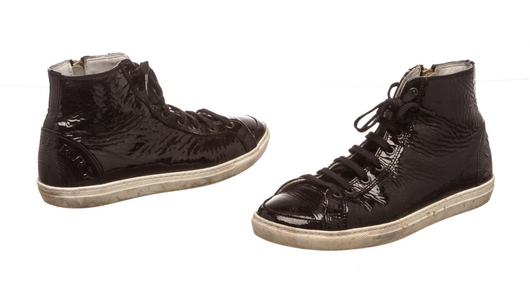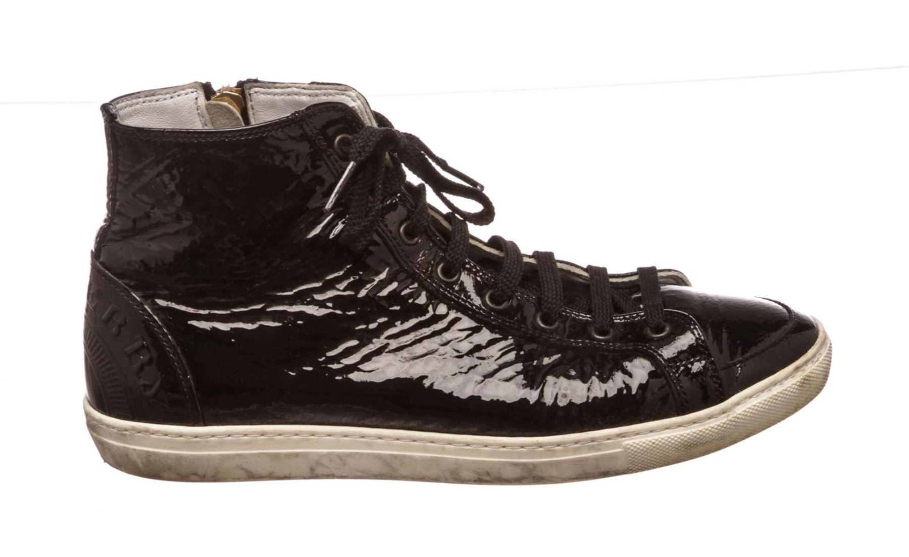 Burberry Black Patent Leather High Top Lace Front Sneakers. Designer size 36.