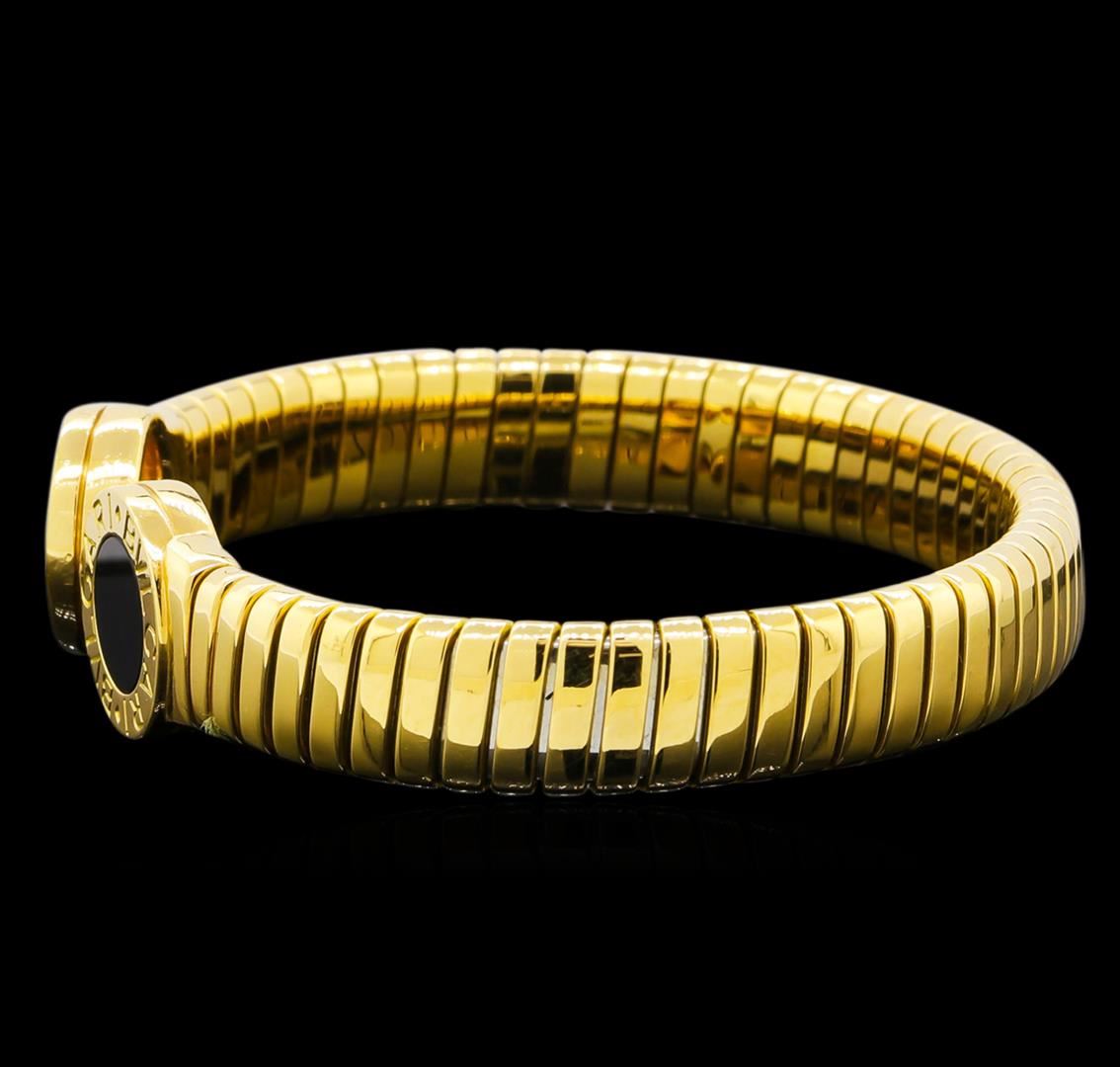 One Bvlgari cuff bracelet featuring: 18KT yellow gold weighing 40.20 grams.