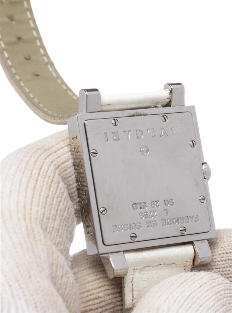 Bvlgari White SQ 29 SLD Stainless Steel Square Ladies Wrist Watch 28mm x 28mm.