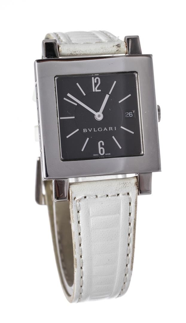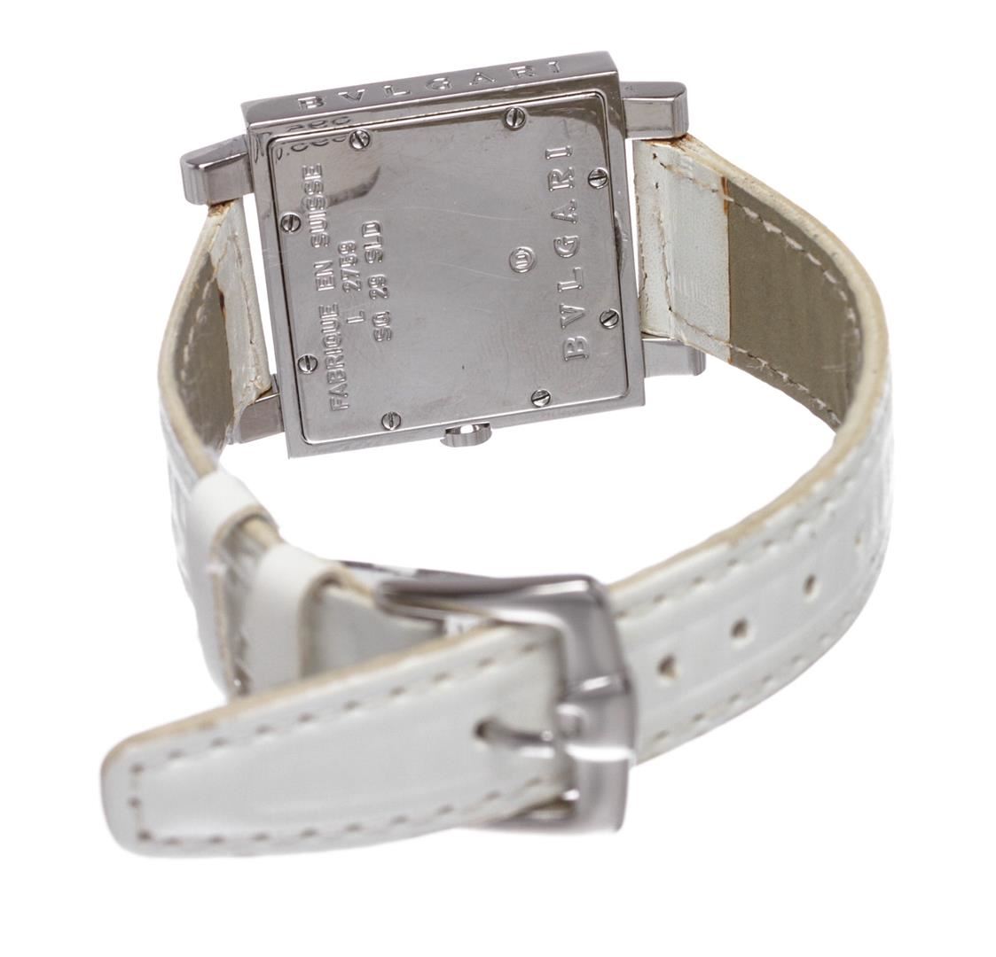 Bvlgari White SQ 29 SLD Stainless Steel Square Ladies Wrist Watch 28mm x 28mm.