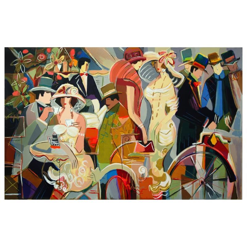 "Cafe Romantique" is a limited edition serigraph on paper by Isaac Maimon, numbered and hand signed by the artist. Includes Letter of Authenticity. Measures approx. 41" x 27.5" (border), 38" x 24" (image).