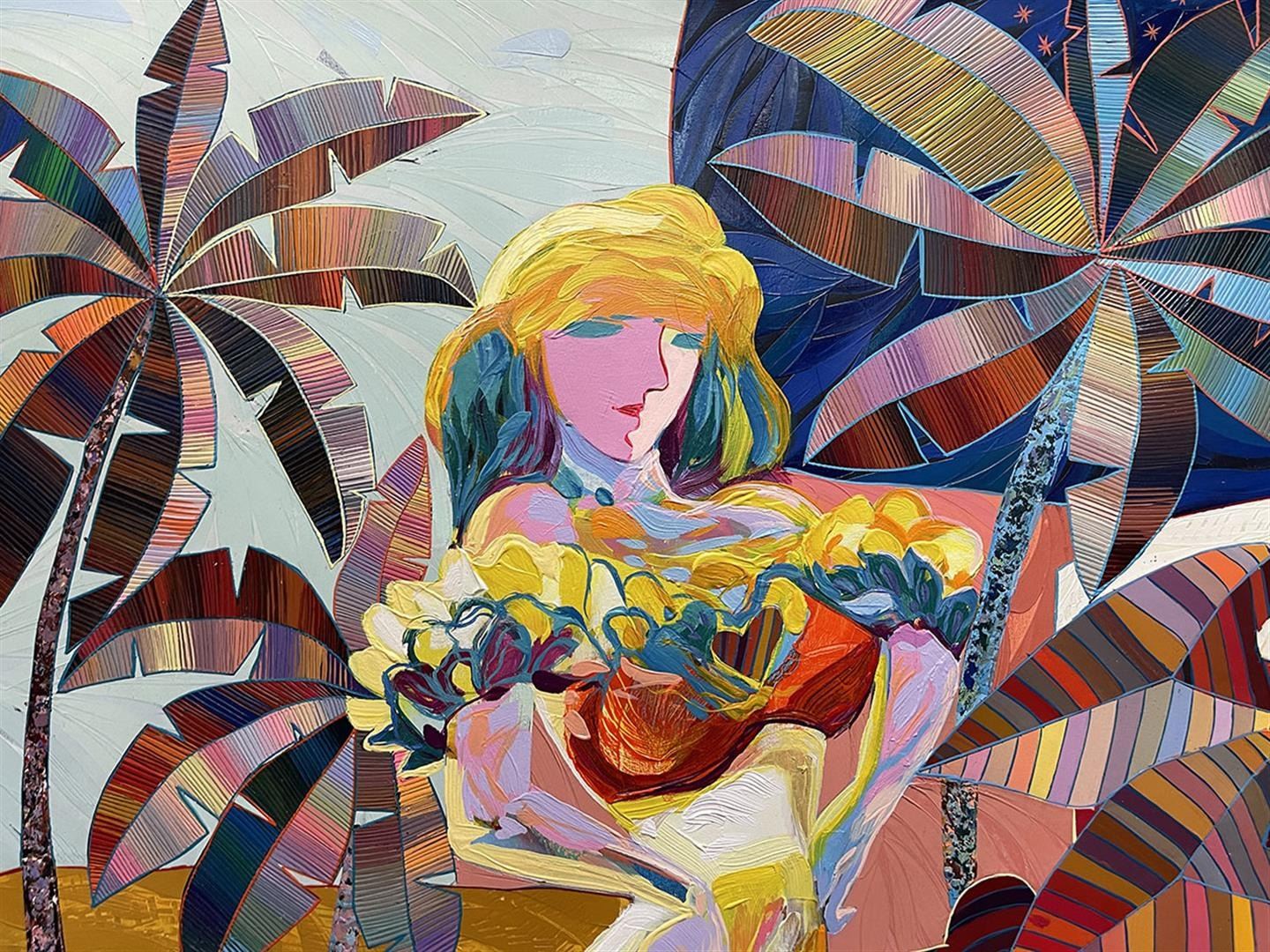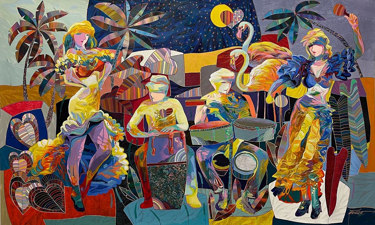 Exquisite original acrylic on canvas. Hand signed by artists. Artwork comes with a certificate of authenticity. This artwork comes rolled. Size 80x48"