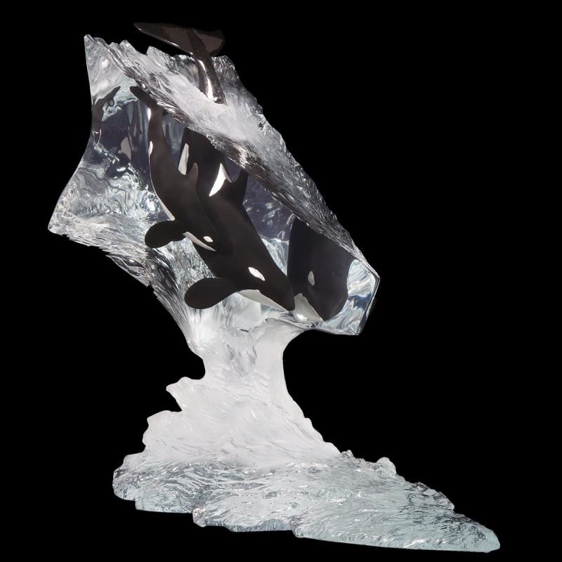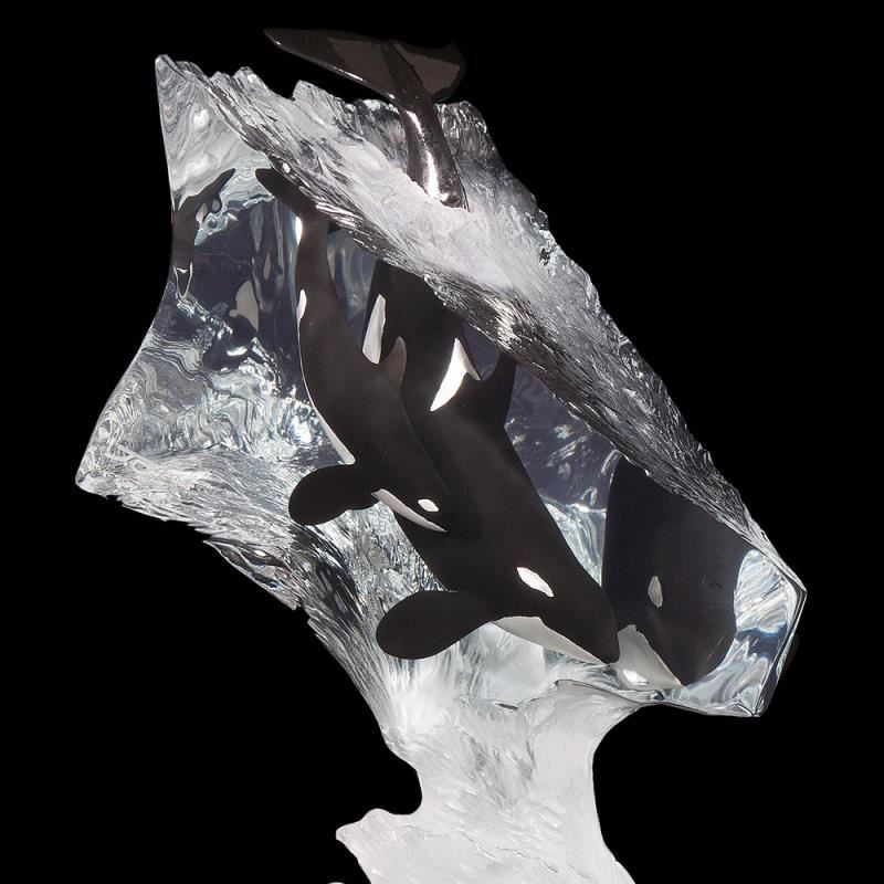 "Calm Waters" is a limited edition mixed media lucite sculpture by John Cuevas. Engraved with the artists signature and number, this piece comes with a certificate of authenticity. Measures approximately 16" x 10" x 14". This item requires special handling and may have a longer than usual turnaround.