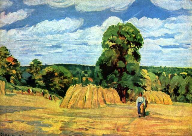Artist : Camille Pissarro - Title: Crops - Medium: Fine Art Reproduction Giclee on Canvas - Image Size: Approximately 14.25 inches x 20 inches - Unframed on Unstretched Canvas - Biography: Camille Pissarro was a Danish-French Impressionist and Neo-Impressionist painter born on the island of St Thomas. His importance resides in his contributions to both Impressionism and Post-Impressionism. Pissarro studied from great forerunners, including Gustave Courbet and Jean-Baptiste-Camille Corot.