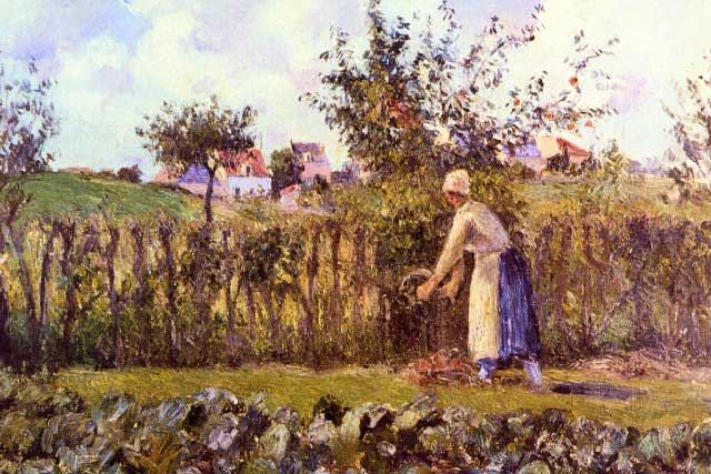 Artist : Camille Pissarro - Title: In the Orchard - Medium: Fine Art Reproduction Giclee on Canvas - Image Size: Approximately 13.25 inches x 20 inches - Unframed on Unstretched Canvas - Biography: Camille Pissarro was a Danish-French Impressionist and Neo-Impressionist painter born on the island of St Thomas. His importance resides in his contributions to both Impressionism and Post-Impressionism. Pissarro studied from great forerunners, including Gustave Courbet and Jean-Baptiste-Camille Corot.