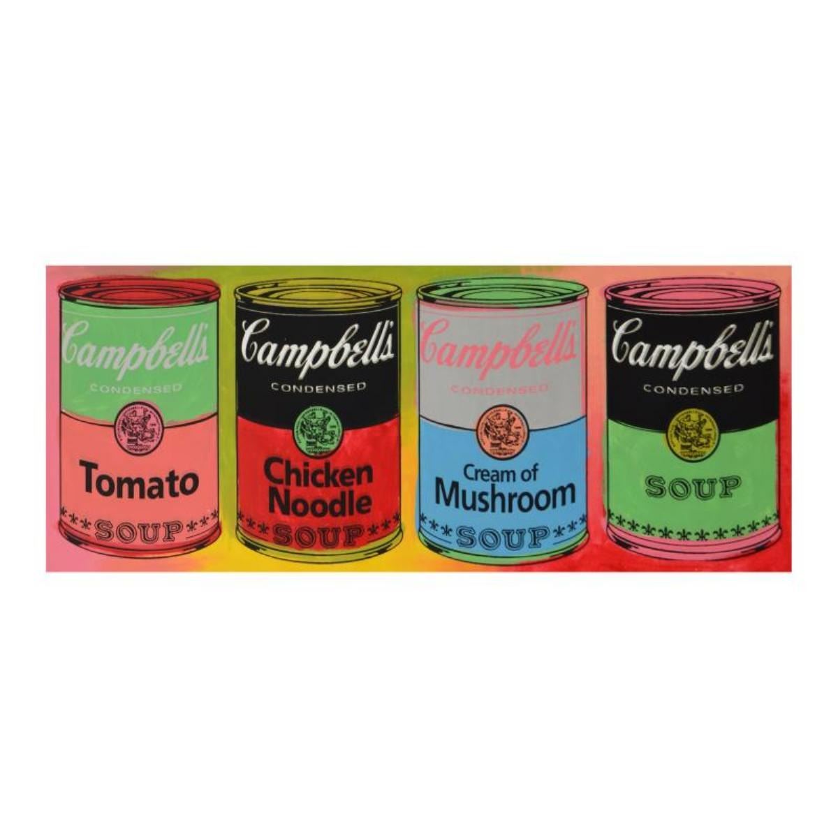 "Campbell's Soup Cans" is a hand painted limited edition silkscreen on canvas from an HC edition by Andy Warhol protege Steve Kaufman (1960-2010). This piece is hand signed inverso. Includes Certificate of Authenticity. Measures approx. 38" x 14" (image).