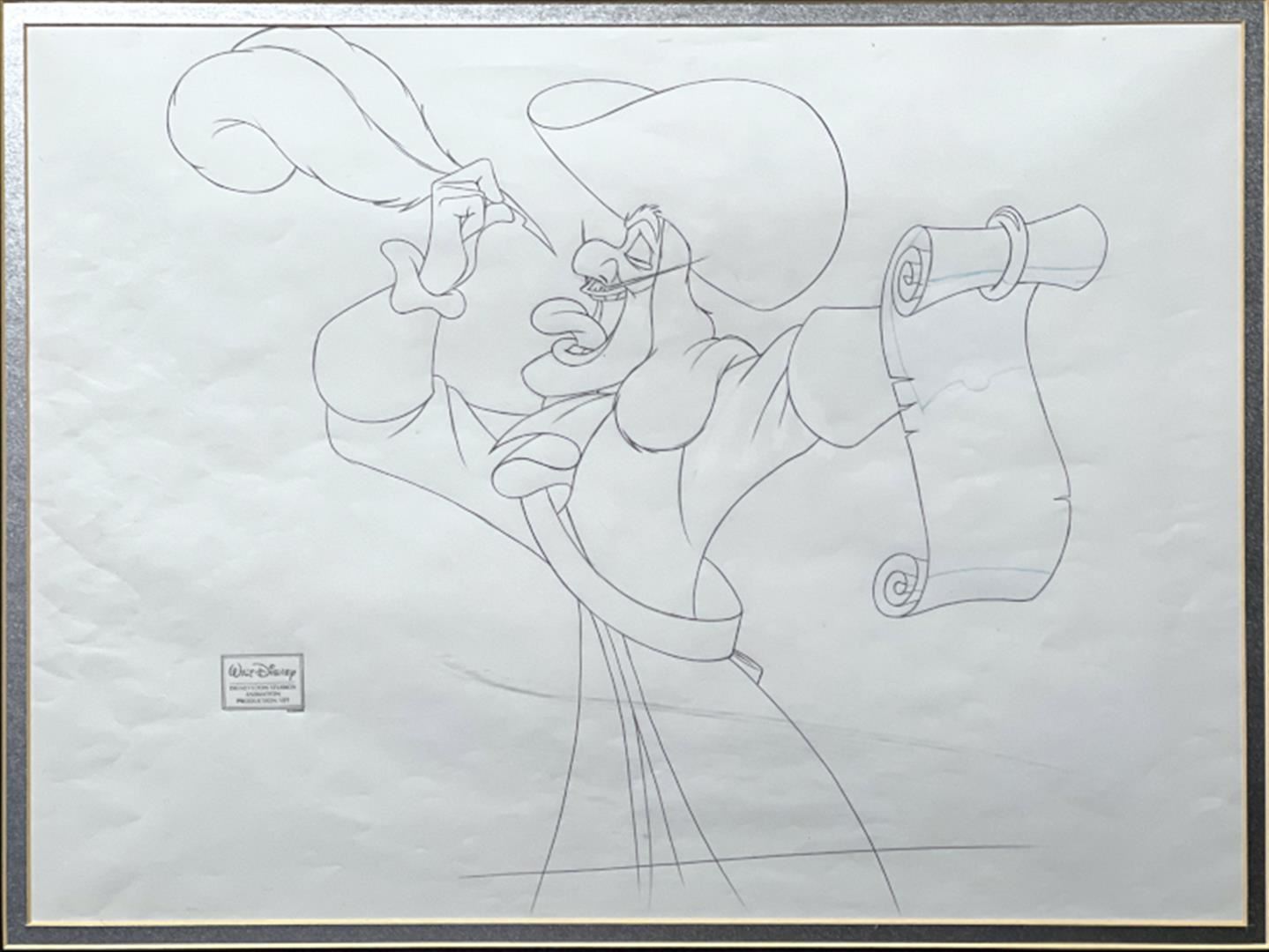 Captain Hook Return to Neverland by Disney. Original One-of-a-Kind Unsigned Pencil Drawing Framed. Fair Condition, Frame Poor Condition. Dimensions: 11 x 15. As Is.