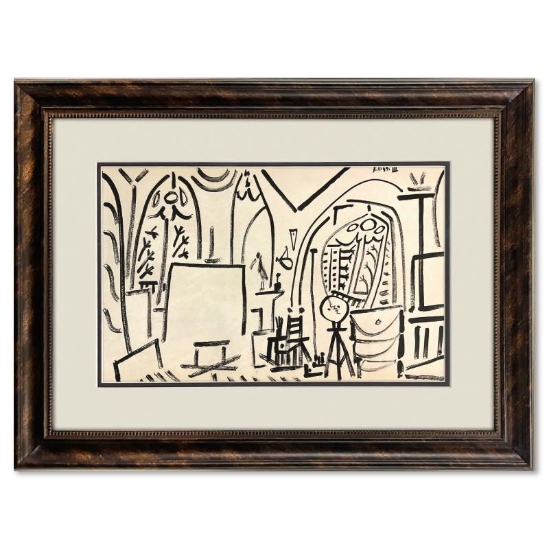 "Carnet de Californie 3.11.55-III" is a vintage lithograph on paper by Pablo Picasso (1881-1973). This piece is from Picasso's Carnet de Californie Series and was printed in Paris, France by Mourlot Studios in 1959. This piece comes framed. Includes Letter of Authenticity. Measures approx. 18.5" x 24.5" (frame), 10.5" x 16.5" (image).