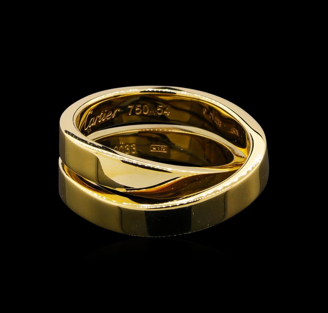 Dare to dazzle with this shiny 18KT yellow gold Cartier Nouvelle Vague Paris Crossover Band Ring. The ring is stamped "Cartier 750 54 DV 0033". This ring will make a perfect gift for a loved one. The simple but sleek design features a double crossover design at the front of the band. Total Weight of Ring: 15 grams. The ring comes with Cartier box.